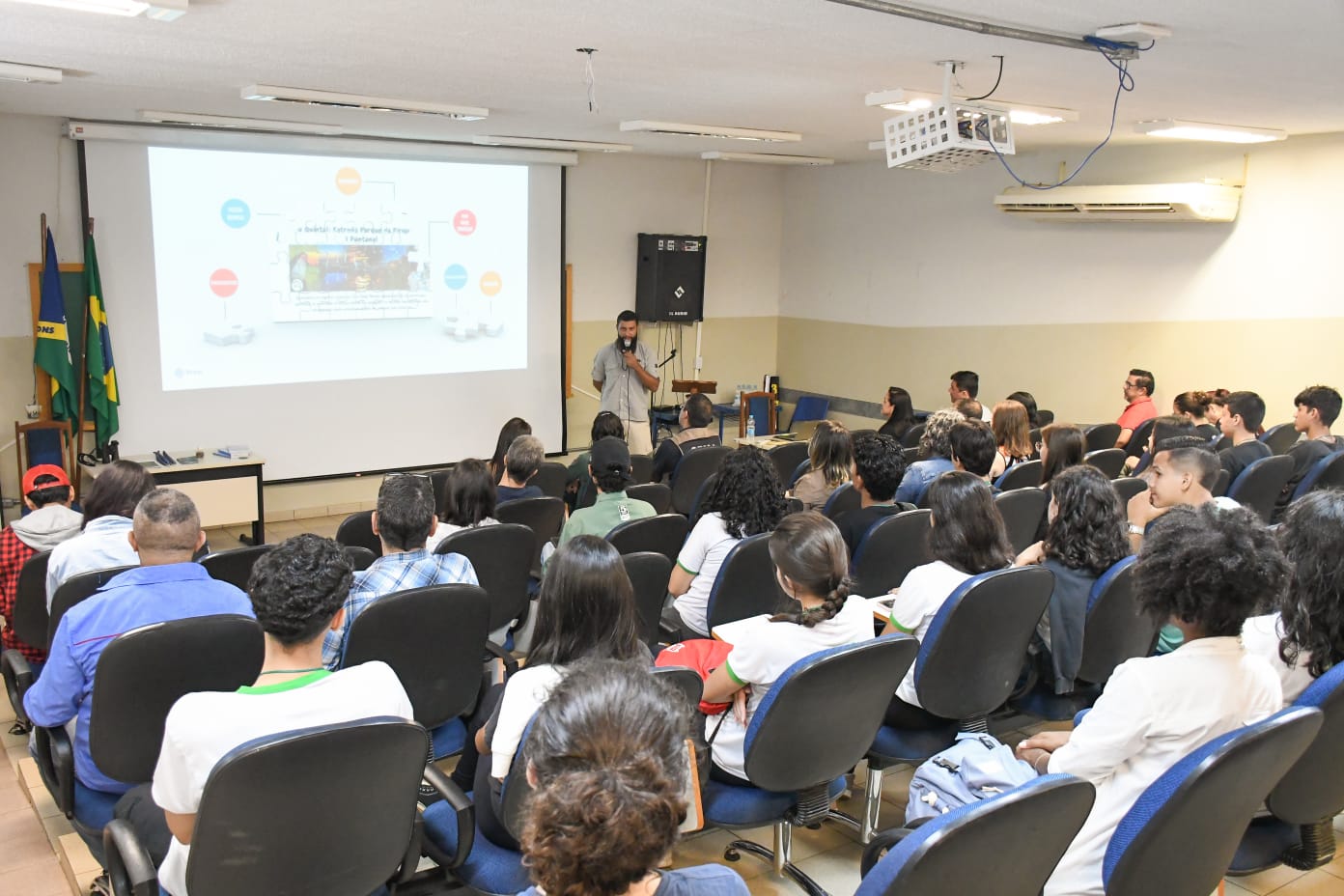 O evento contou com palestras na parte da manhã. O primeiro foi o biólogo Luiz Mendes, que destacou a importância de valorizarmos nosso quintal, em referência à riqueza de fauna, flora e cultura da região de Aquidauana. Mostrando como nossa região já é um potencial para o turismo de observação de vida silvestre!