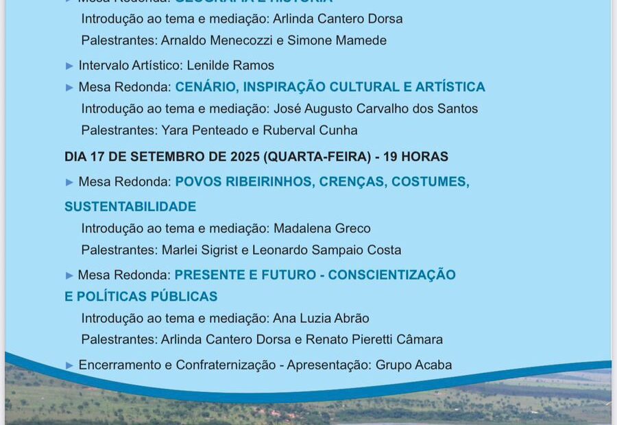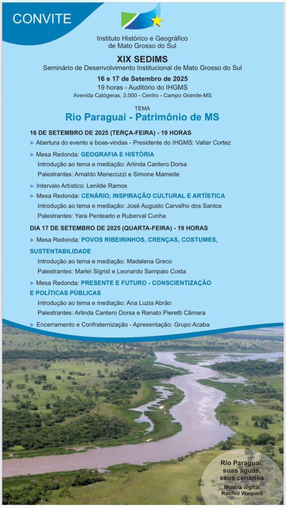 Com o tema “Rio Paraguai – Patrimônio de MS”, o encontro reúne pesquisadores, artistas e representantes do poder público para debater o valor histórico, cultural e ambiental do rio, com mesas de diálogo e atividades culturais.